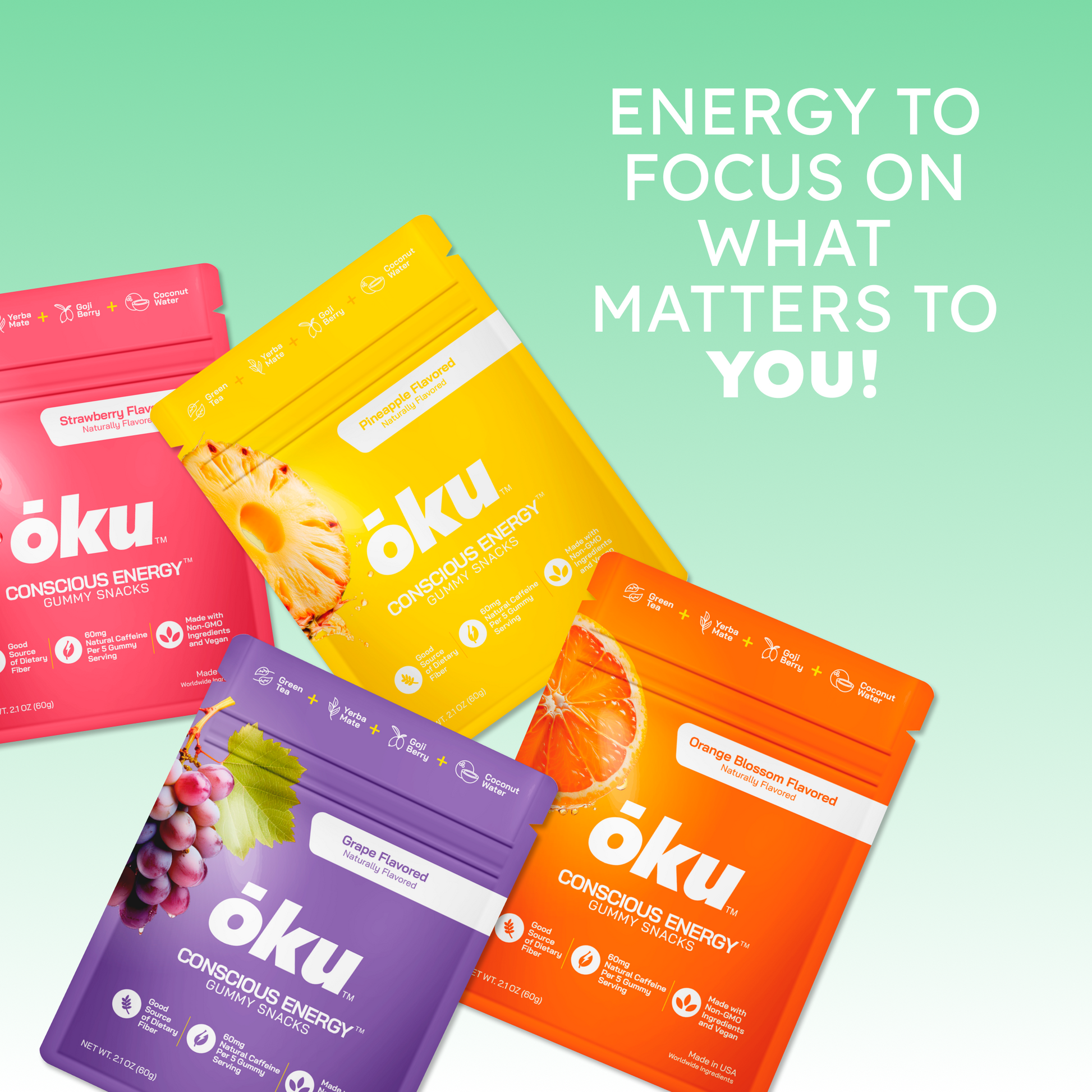 Can’t decide on a flavor? The Variety Pack lets you sample the best of all worlds—Strawberry, Grape, Pineapple, and Orange Blossom. Each gummy snack is a delightful burst of natural flavor paired with a clean, steady energy lift. Whether you’re tackling a long day, heading to the gym, or simply need a mid-afternoon pick-me-up, these vegan, gluten-free gummy snacks provide a delicious and conscious way to fuel your energy needs.